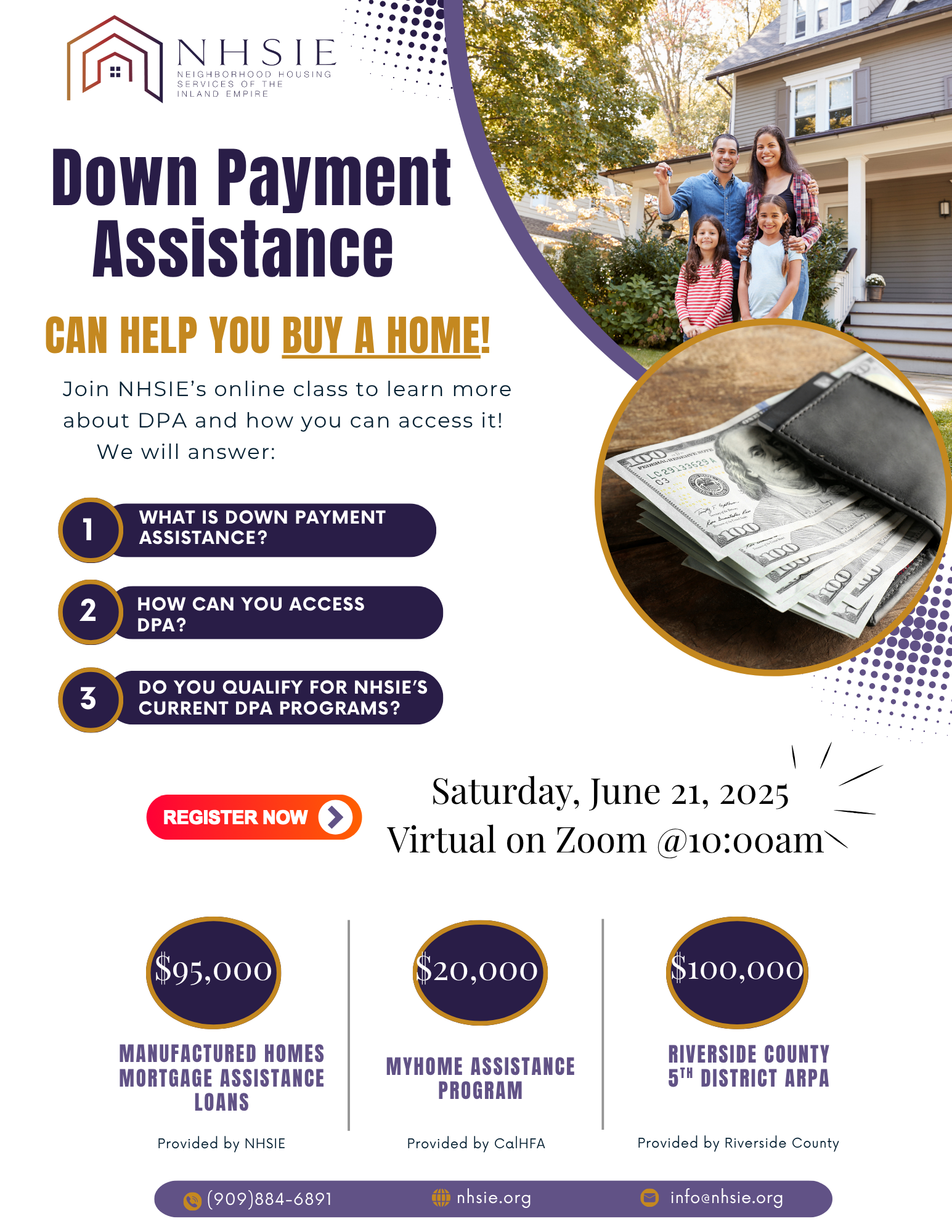 NHSIE’s free class on accessing Down Payment Assistance will help you learn about what DPA is and how you can qualify for it.